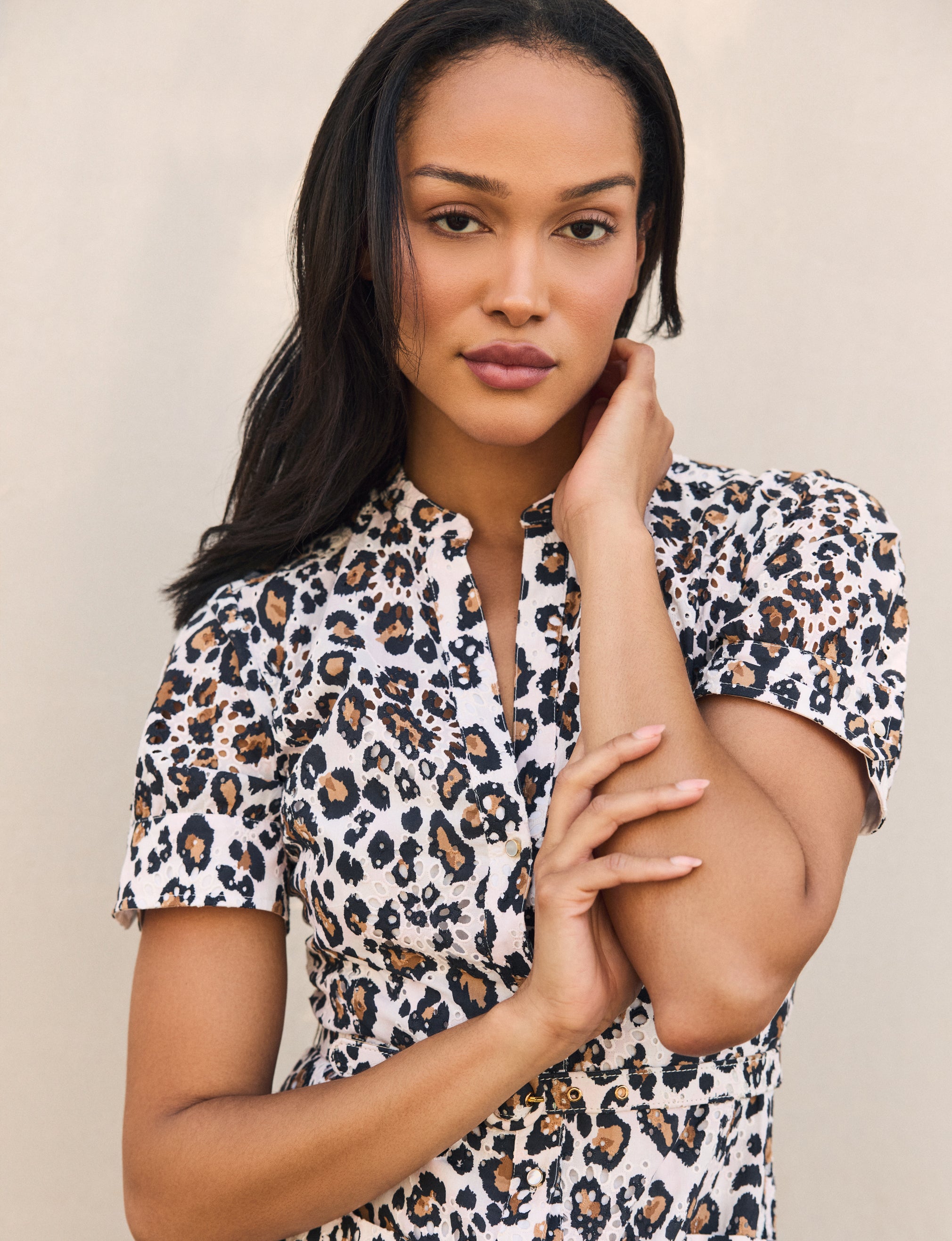 Late-season warmth is expressed through a thoughtful mix of textures. From delicate crepe silk and airy eyelet to rich suede and lightweight ribbed knits, each piece plays off the next for seamless styling.