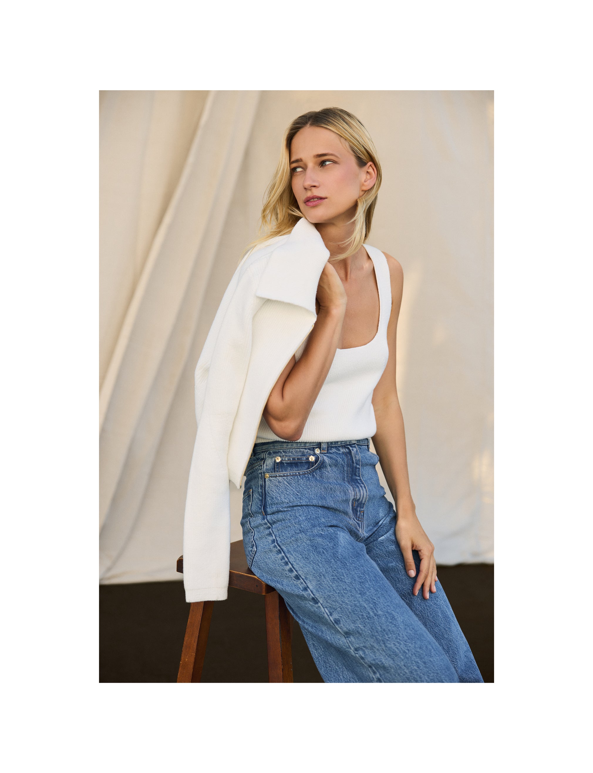 As the season shifts, so do your wardrobe instincts. This capsule moves with that change, blending fluid fabrics with softly structured silhouettes. Designed to pair effortlessly with our signature knits, each piece brings versatility to sun-drenched days and cooler evenings alike.