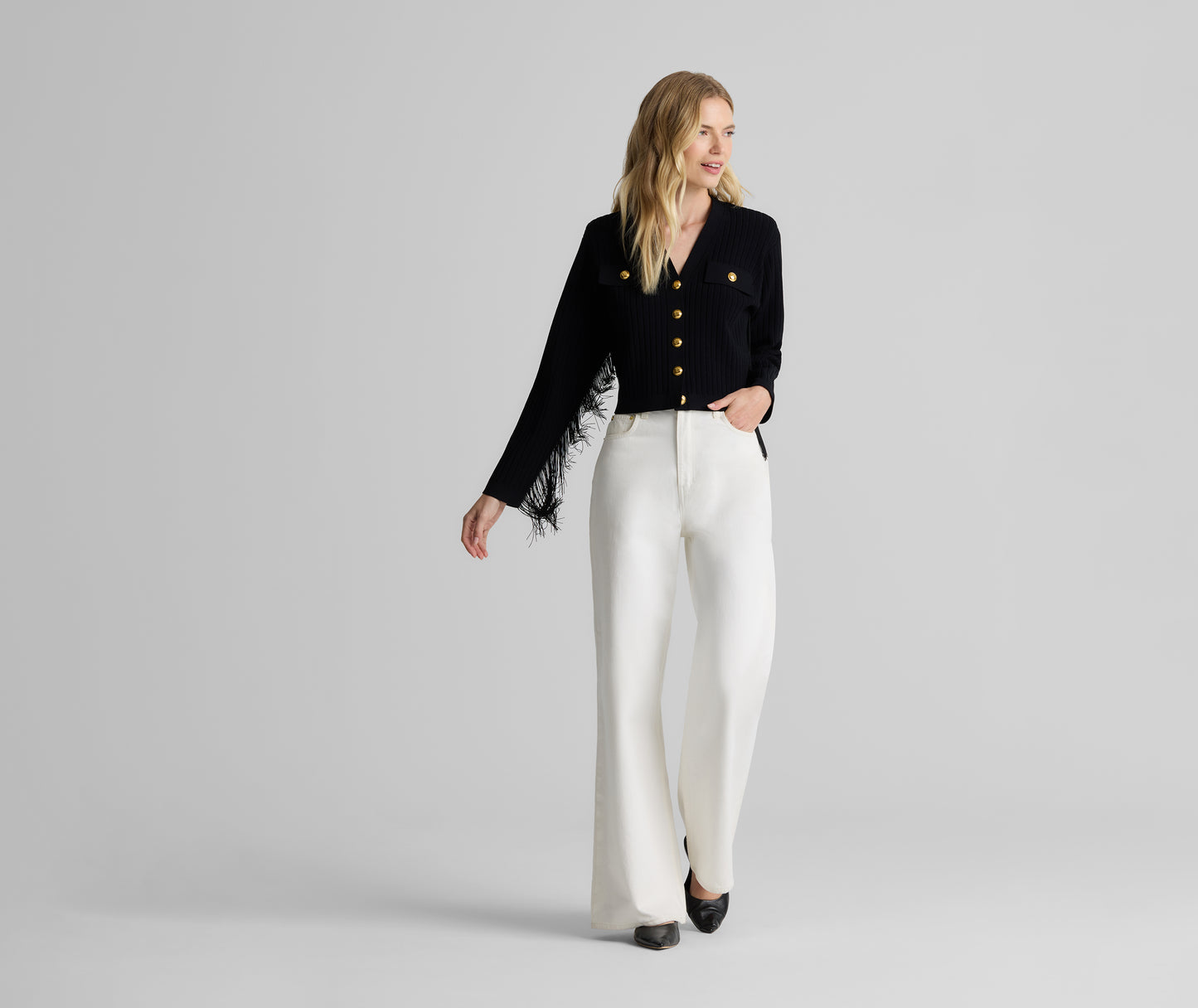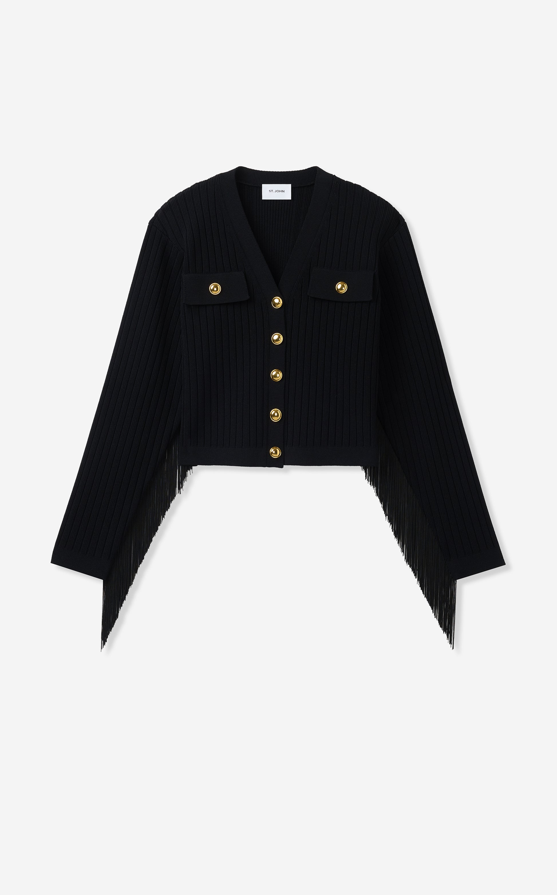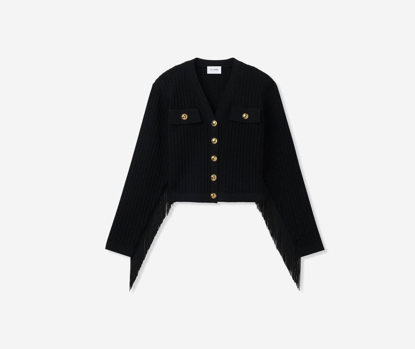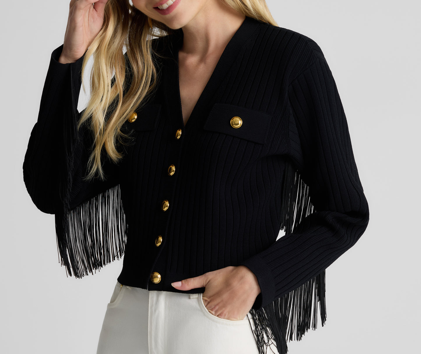 Playfully embellished yet strikingly sophisticated, the Priscilla was designed to stand out in any setting. This ribbed knit jacket features fringe-trimmed sleeves that make every move more enchanting as well as gleaming gold buttons for a classically luxurious finish. Styled casually with your tried-and-true denim or dressed up with tailored pants and pencil skirts, it’s an equally bold and versatile wardrobe addition.