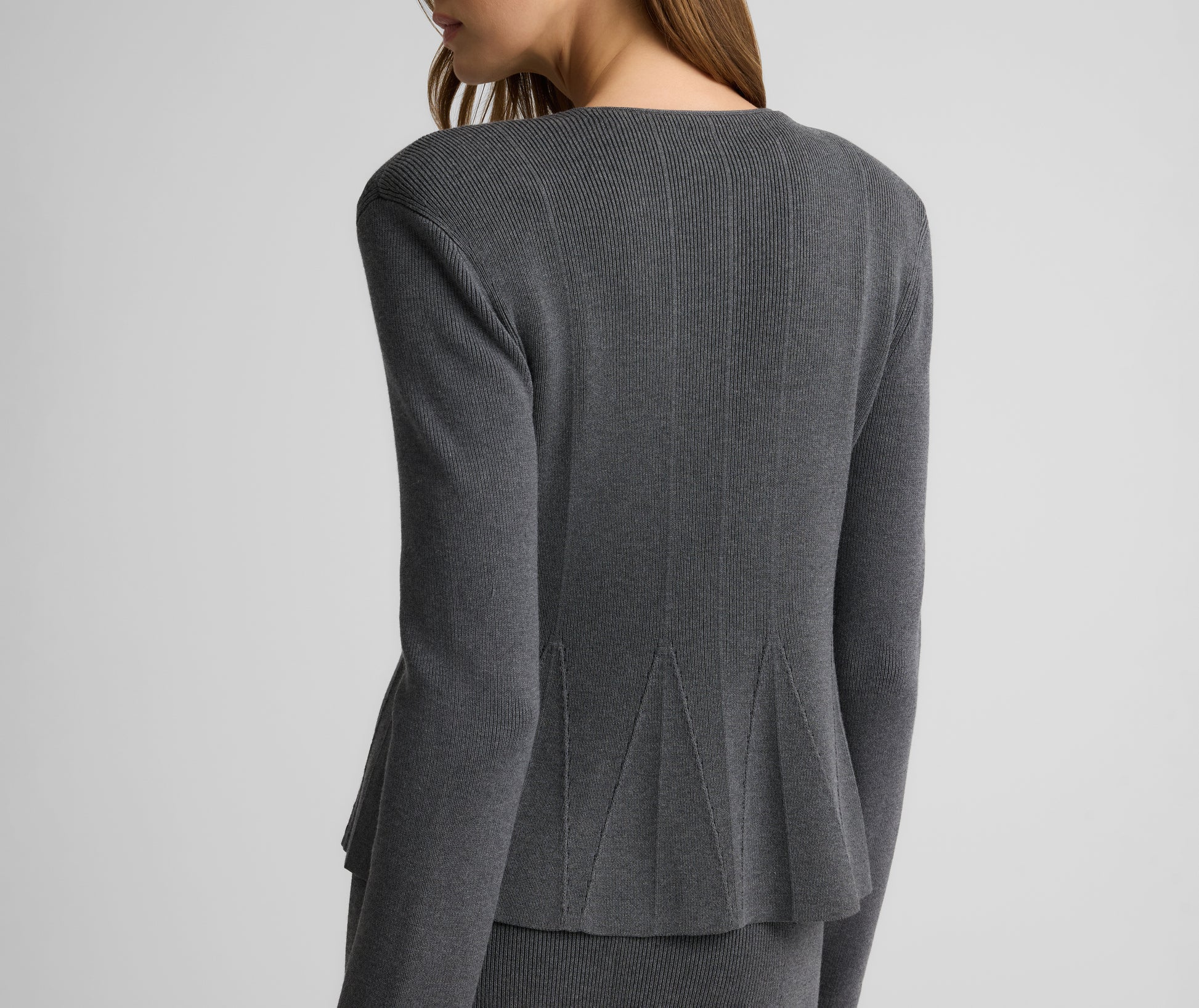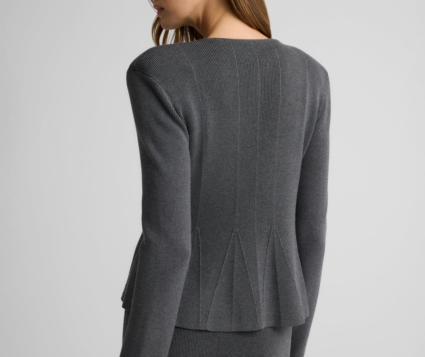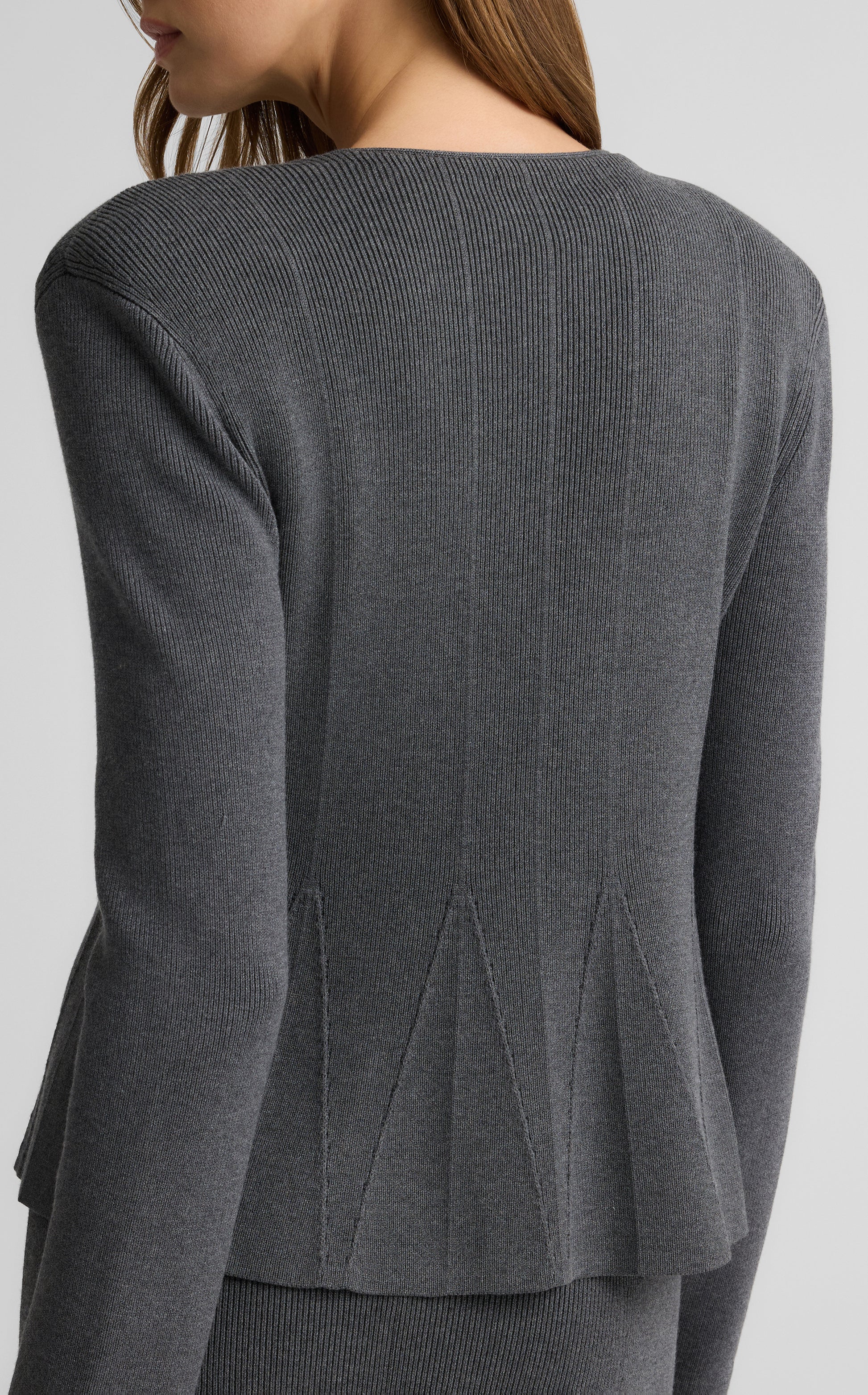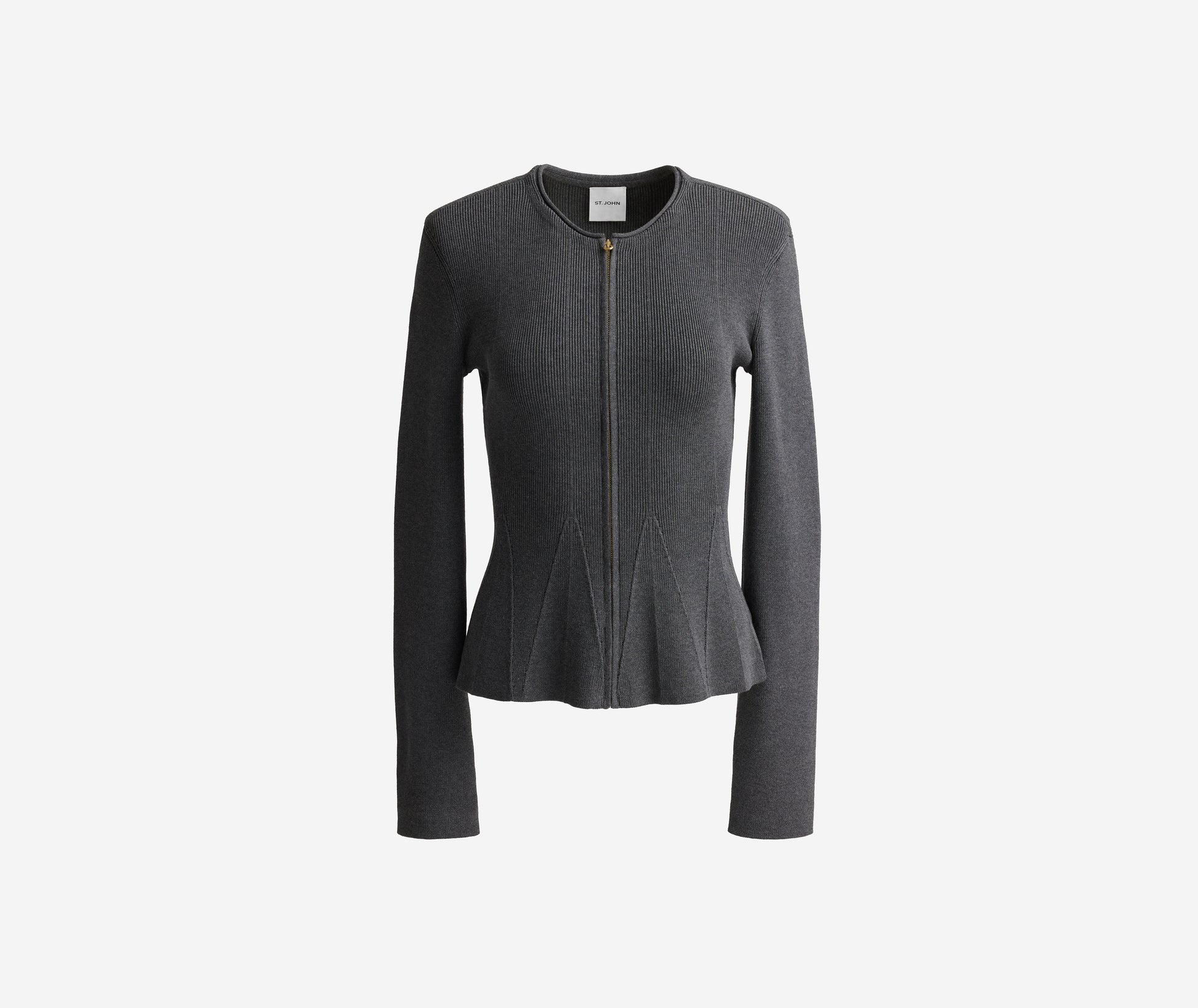 The Maura redefines power dressing by perfectly balancing softness and strength. With its structured shoulders and godet details, this zip-up jacket presents a defined shape while the delicate ribbed knit offers a flexible, comfortable fit. Layer over the Velma Dress for a bold and refreshing alternative to traditional suiting.
