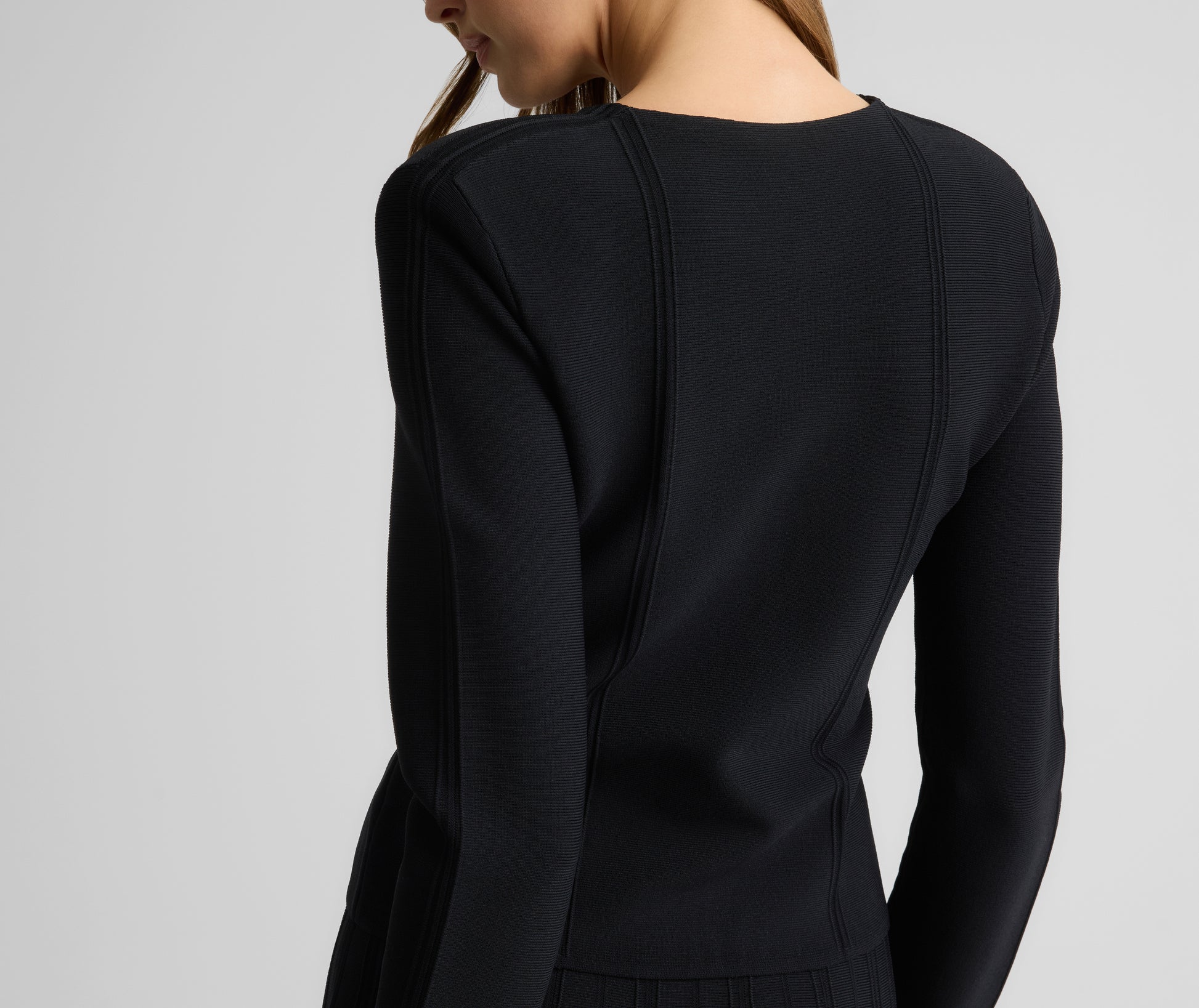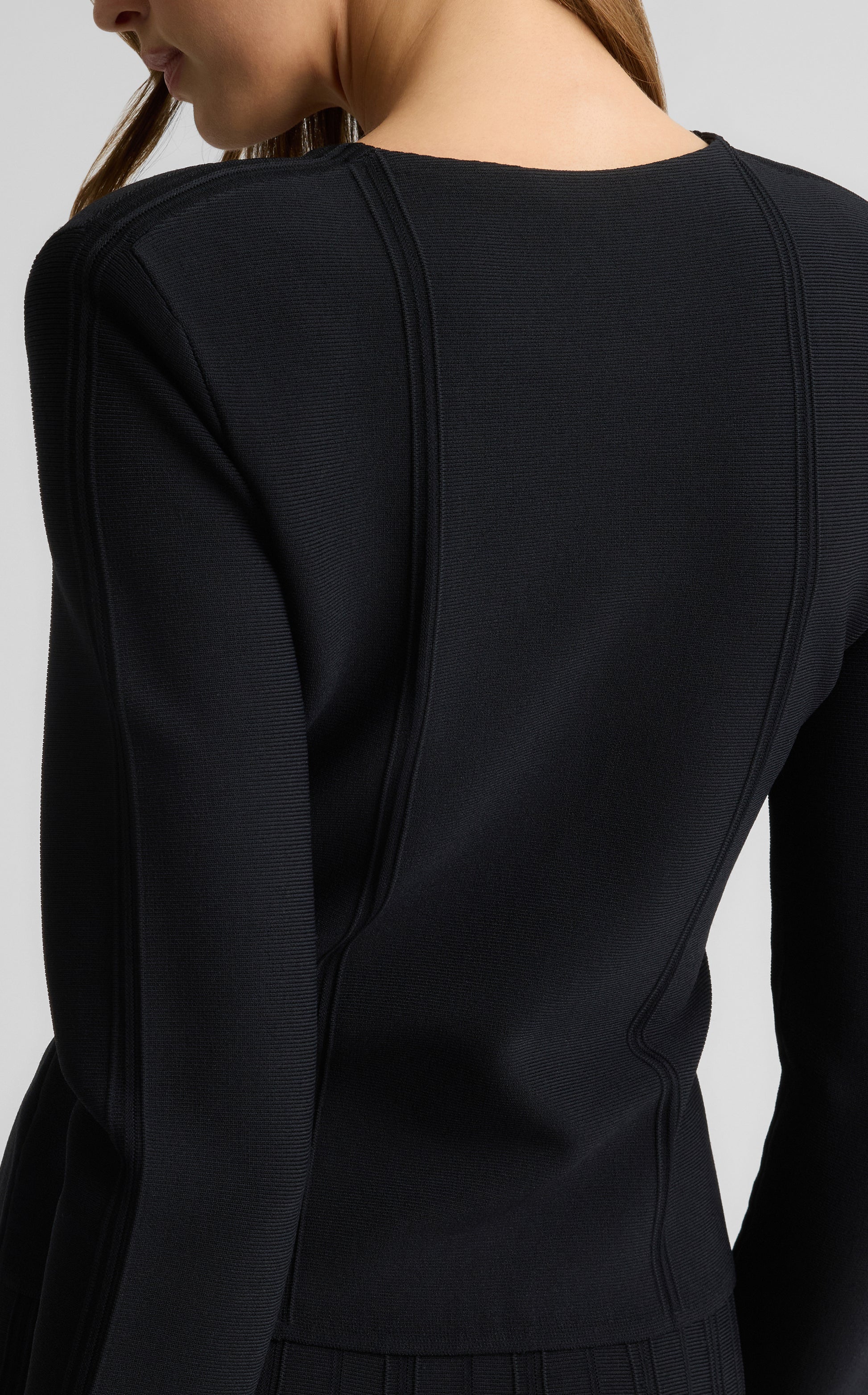 Crafted in our flexible Valley Knit and finished with architectural seaming, the Corinne is a sophisticated take on a classically sporty style. This jacket's sleek, flattering silhouette is easily dressed up with our coordinating Edith Skirt, but pairs just as effortlessly with denim for laid-back moments.