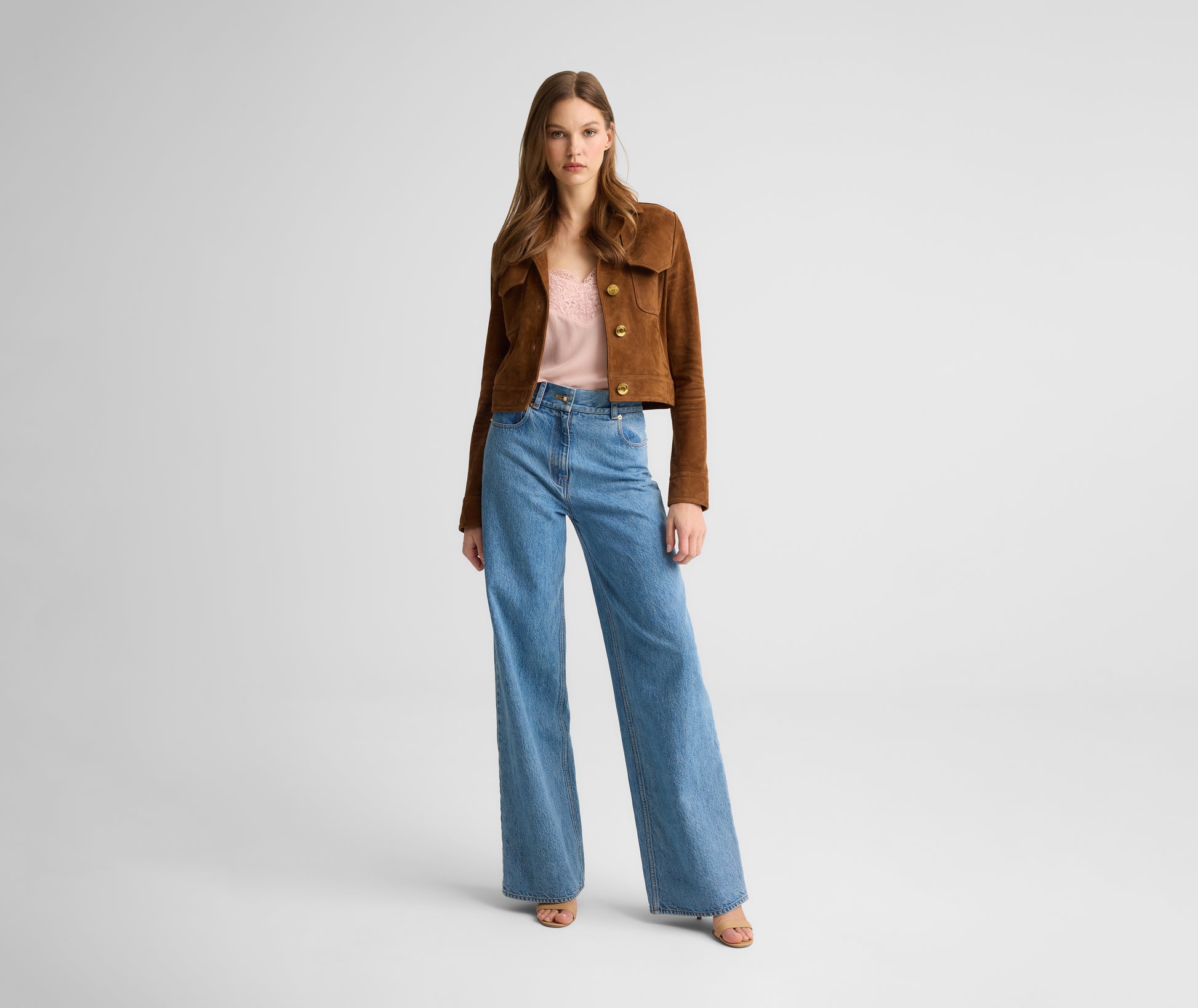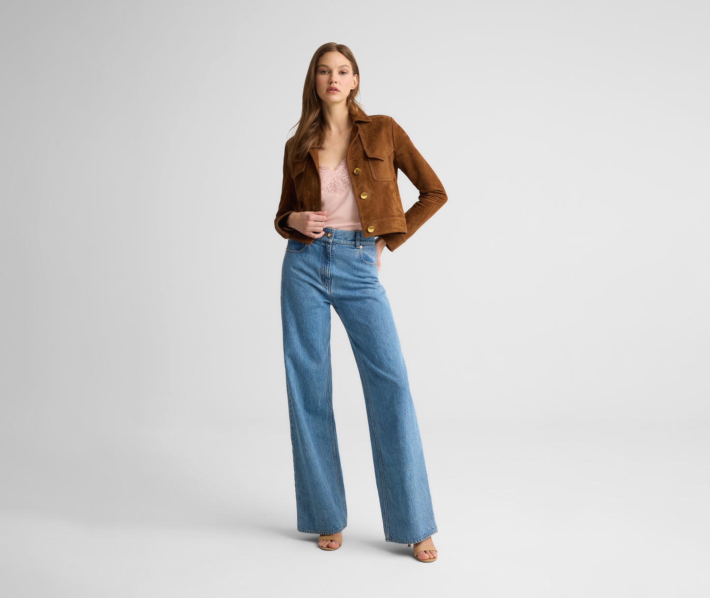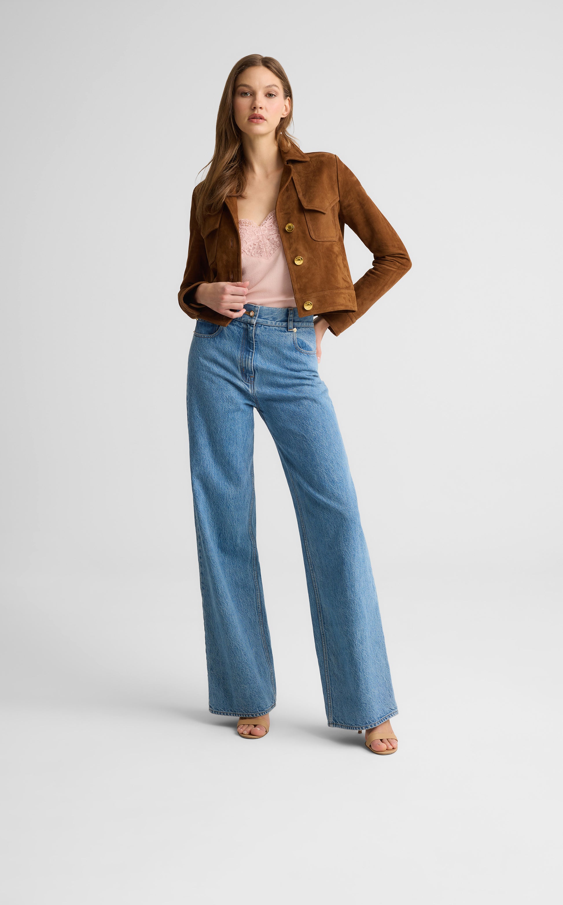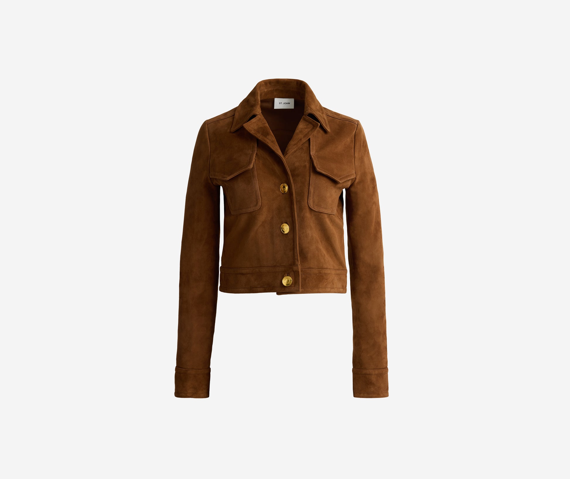 Tailored to perfection and crafted with luxury in mind, the Laurel refines the classic suede jacket through elevated details like high shine gold buttons and decorative flap pockets. And with its fitted, slightly cropped silhouette, it adds a layer of effortless polish to casual and dressed-up ensembles alike.