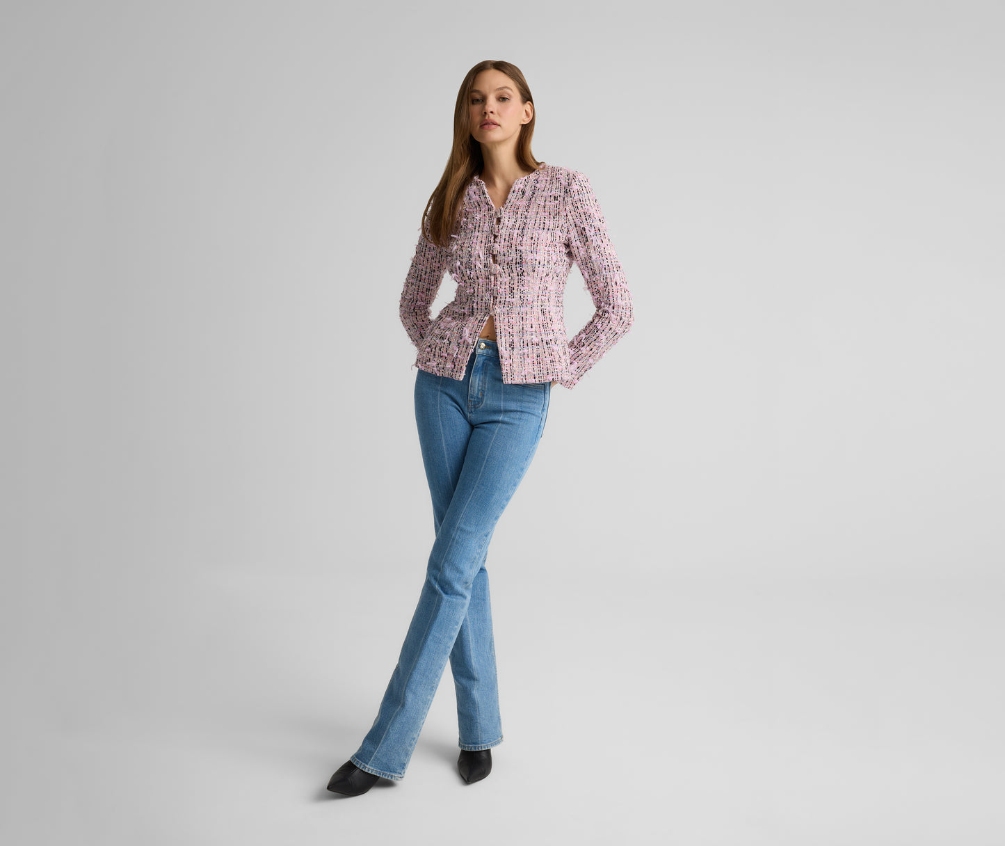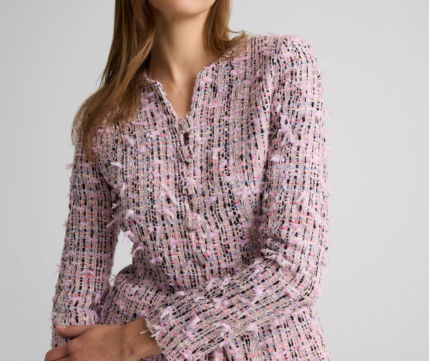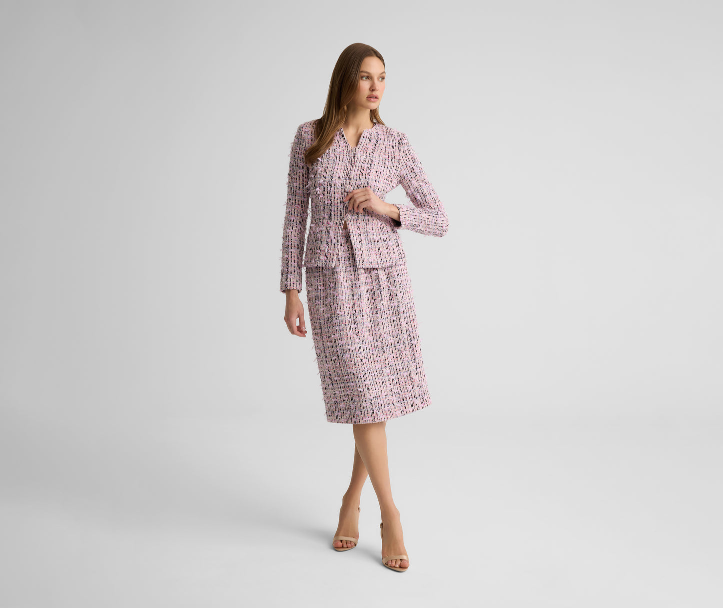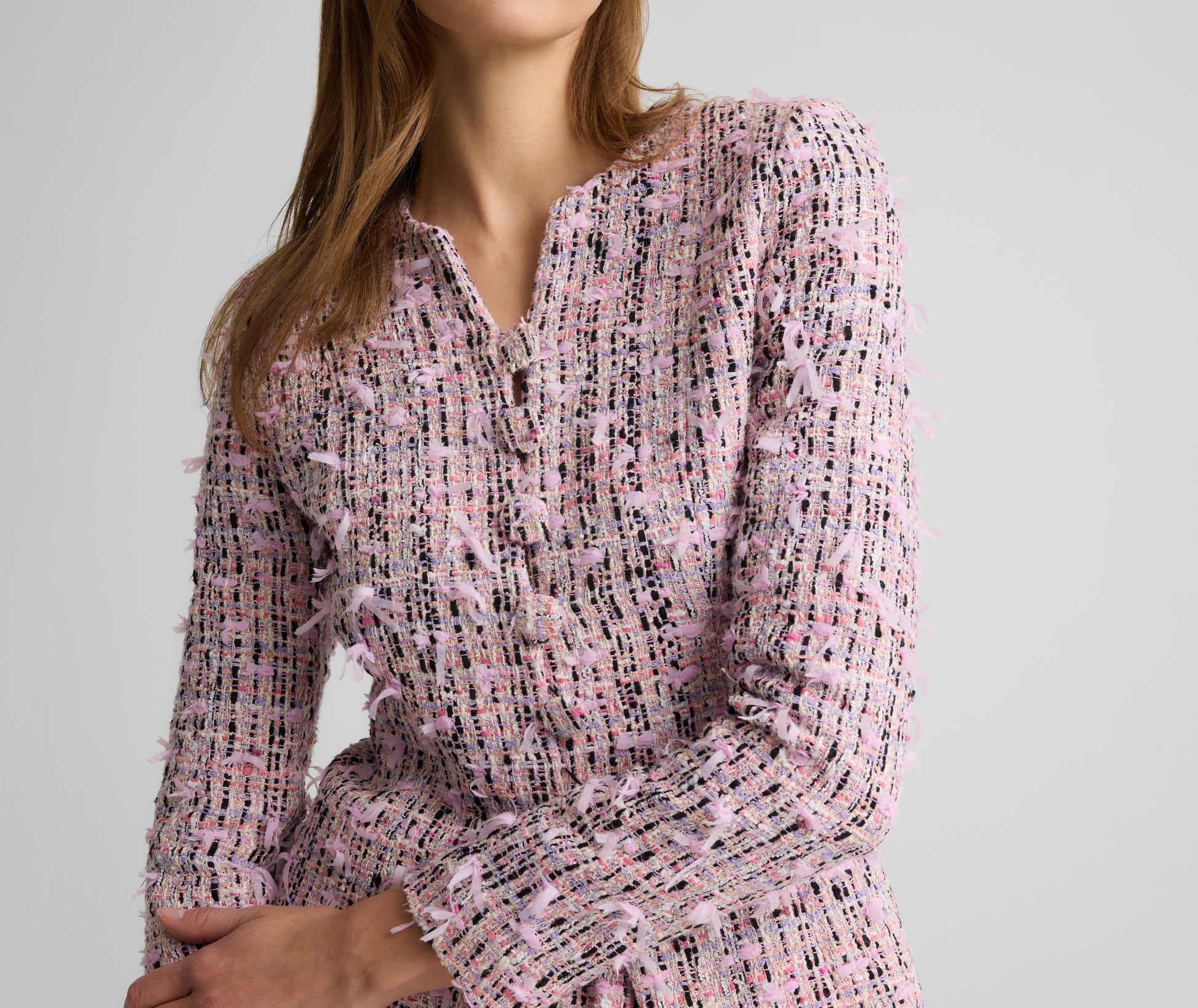 From its fluttery finish to its fabric covered buttons, the Anastasia features thoughtful details from every angle. Our uniquely textured Ivy Tweed gives this fitted, figure flattering jacket its showstopper status—whether worn off-duty with denim or with its coordinating Arielle Skirt for a polished yet whimsical set at the office or a lavish luncheon.