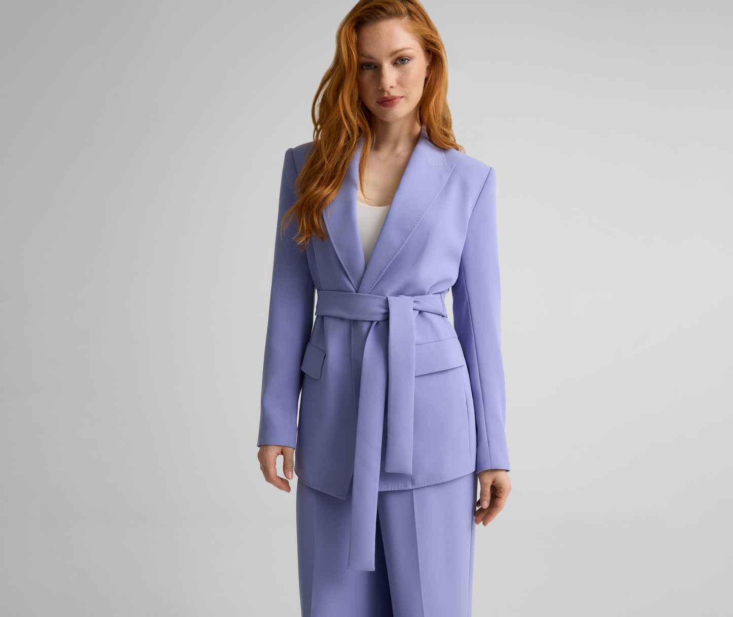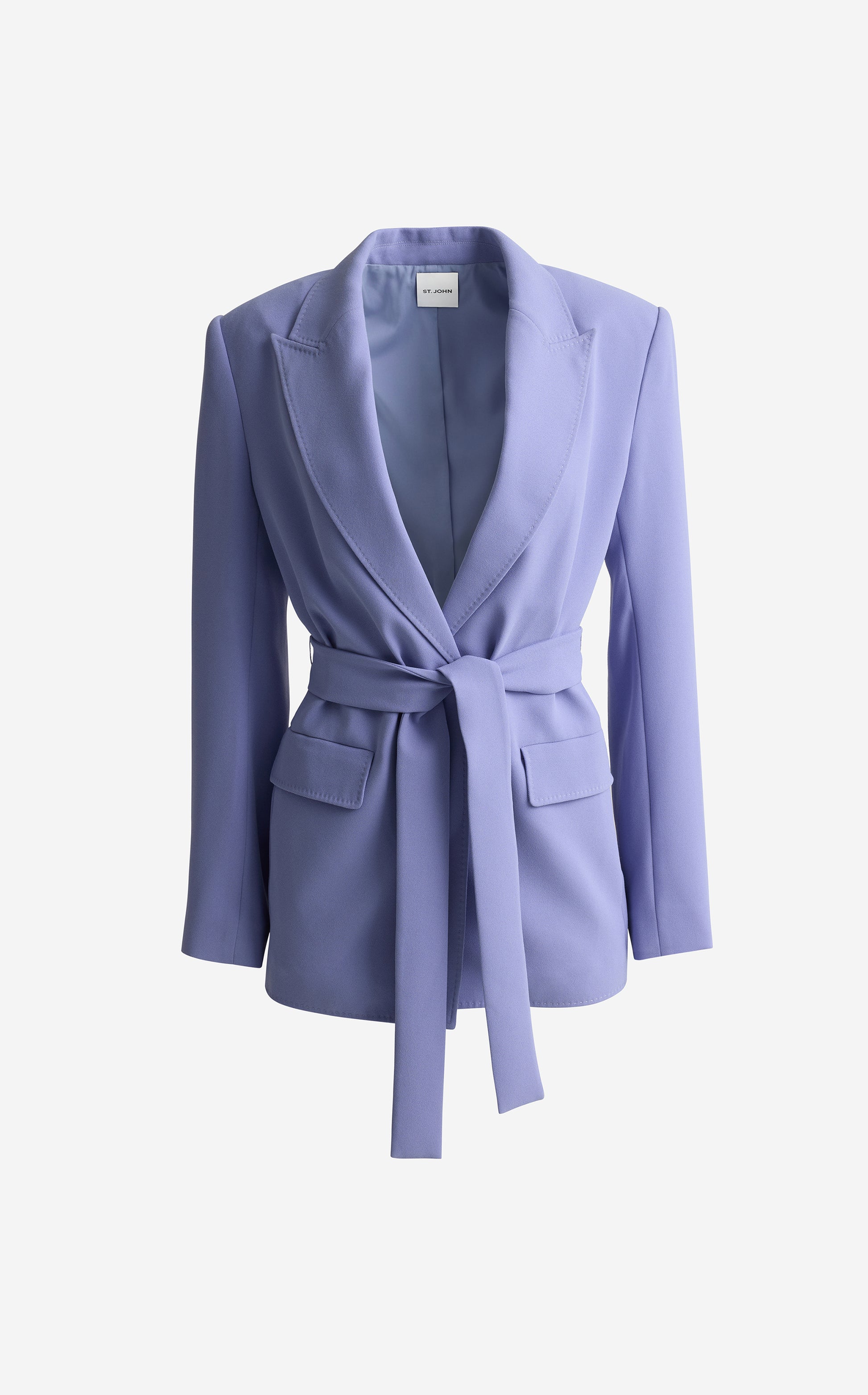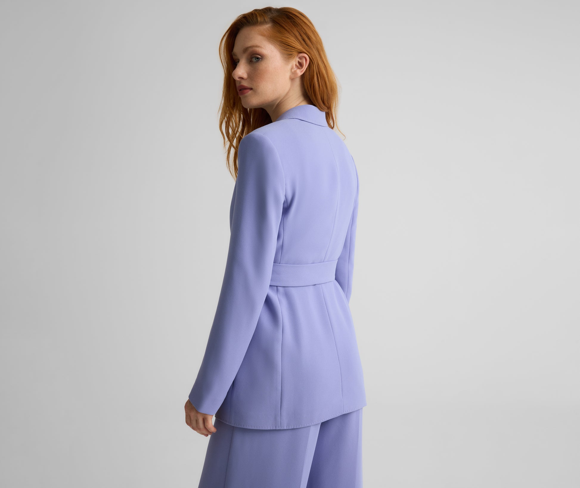 The Juliana puts a softer spin on traditional tailoring. Made from fluid Satin Back Crepe in soothing Iris to drape effortlessly on the body, this evening-ready jacket features a tie waist for the most flattering fit. Wear as a luxurious layer over formal dresses or pair with the matching Tabitha Pant for a graceful take on the tux.