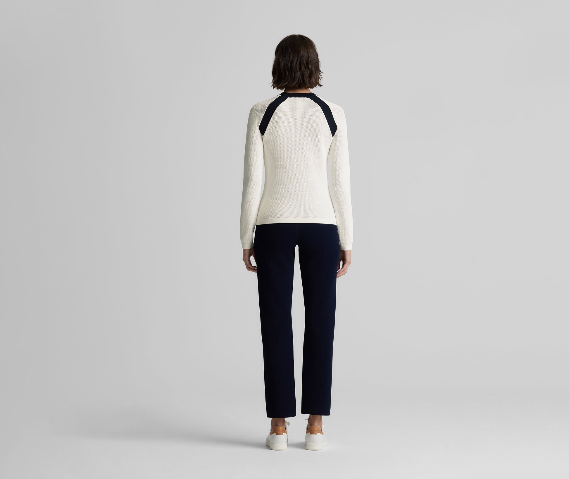 Created in an exclusive collaboration with influential golf brand Malbon, the Sheryl upgrades classic course style with a touch of glamour. Designed in our flexible Contrast Knit for comfortable wear on or off the green, this sleek sweater features slim, straight raglan sleeves accented with pearl buttons, plus Midnight trim for a look that’s classically sophisticated and totally versatile.